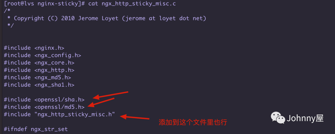 找到sticky刚刚的解压目录,进入修改文件 vim ngx_http_sticky_misc.c ,加入下面的头文件