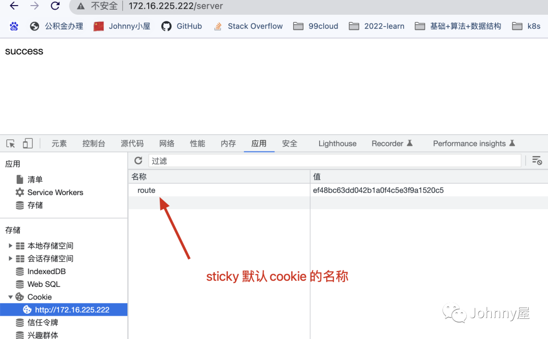 可以看到stick 帮我们下发了 route 这个cookie , 并且这个不会变 默认关闭浏览器就会失效