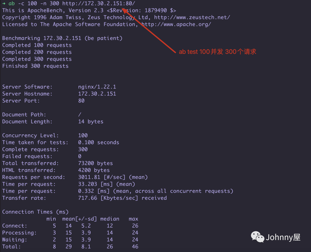 要注意 ab test 是根据返回请求的内容来判断 是否成功 如果2次返回的数据不同则算作 Failed requests, 我一开始把两个nginx.html 区分了内容 所以有一半都是错误的请求... 要注意哦!