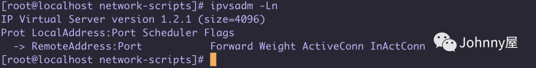 # 可以通过 ipvsadm -Ln 查看虚拟服务, 此时是没有配置的#使用 ipvsadm 命令设置转发规则