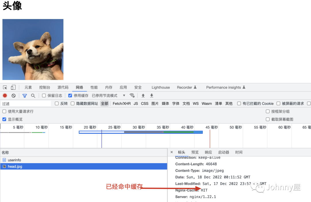 可以看到 已经缓存了2个文件 一个是后端返回html 一个是html中引用的 jpg 图片