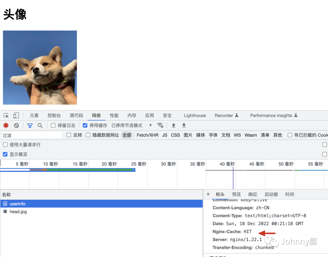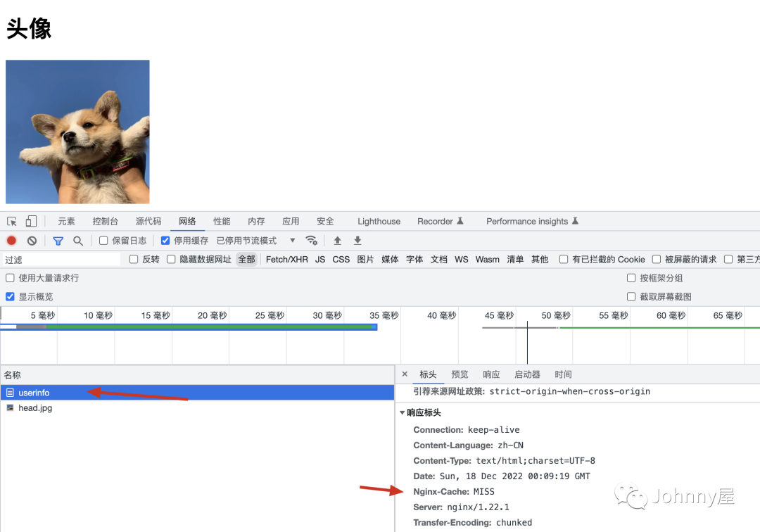第一次访问 可以看到 MISS 状态 就是未命中缓存